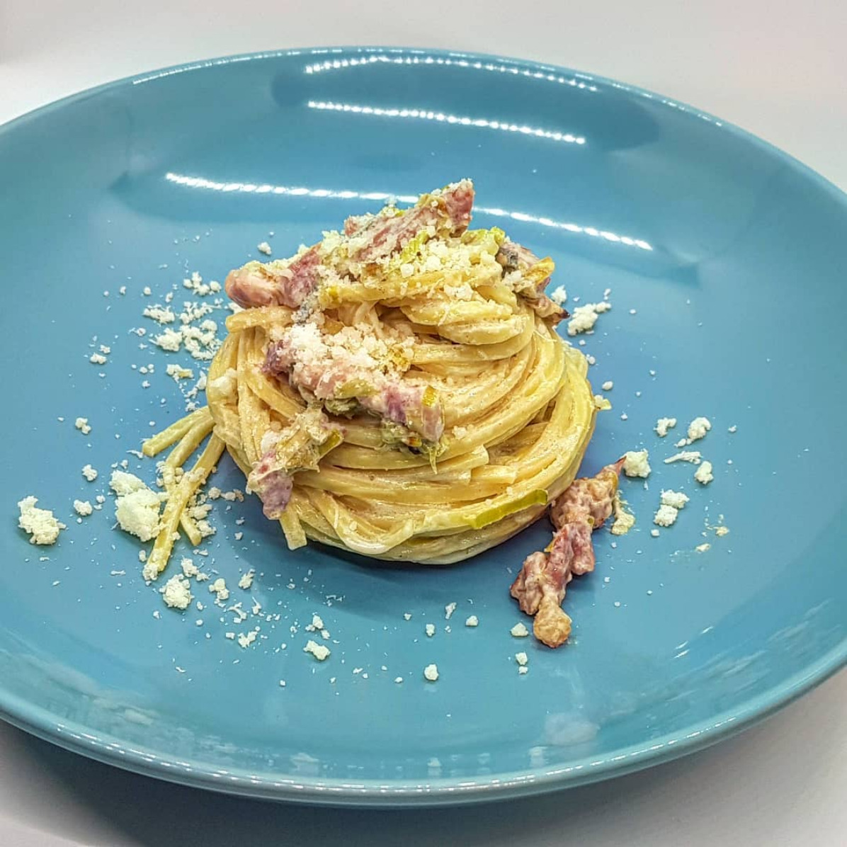 Primo piatto dal gusto deciso grazie all'alchimia tra il porro e la pancetta.
